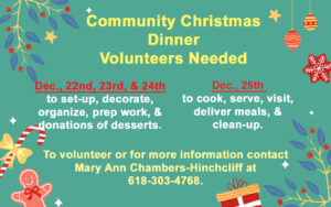 FREE community meal the last Sunday of each month. Dinner is served with dessert and beverage.