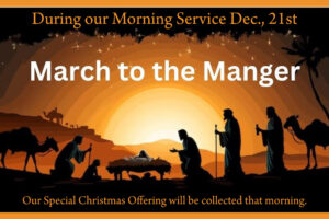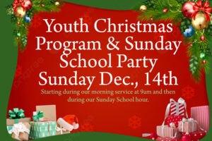 The Program will be during our regular Sunday morning service, starting at 9 am, and then our Sunday School Christmas Party will be during our Sunday School hou,r starting at 10:15 am.
