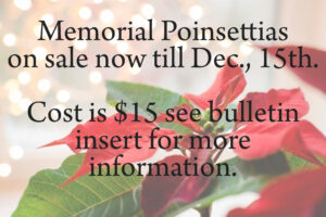 You will be able to pick up your poinsettia on Dec., 24th after our Christmas Eve service.